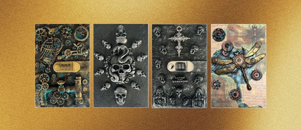 Our notebooks are handcrafted in the UK, inspired by the dark, intricate worlds of steampunk and gothic design.